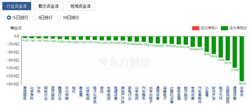 與銀行股的風光形成鮮明對比的是,半導體板塊今天簡直成了資金黑洞。高達168.2億的資金淨流出半導體板塊,讓人不禁要問,半導體的寒冬真的來了嗎?